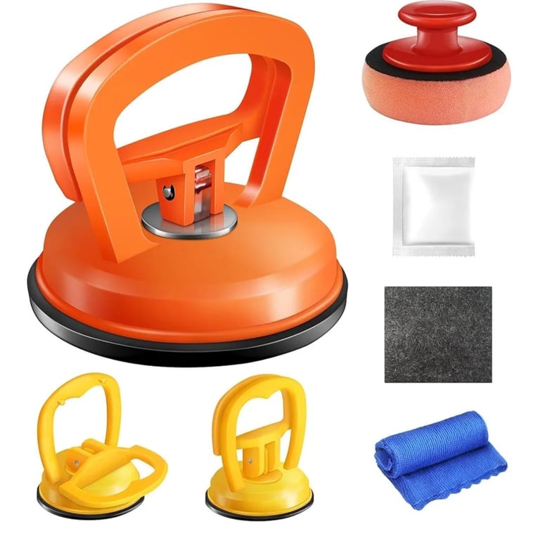 The Dent Puller Kit is a compact and powerful tool designed to remove car dents easily and safely. With strong suction cups, it adheres to smooth surfaces for quick dent repair without damaging the paint. This multi-purpose tool is also great for lifting glass, tiles, or screens. Lightweight, durable, and easy to use, it comes in three vibrant colors, making it a must-have for car owners and DIY enthusiasts.